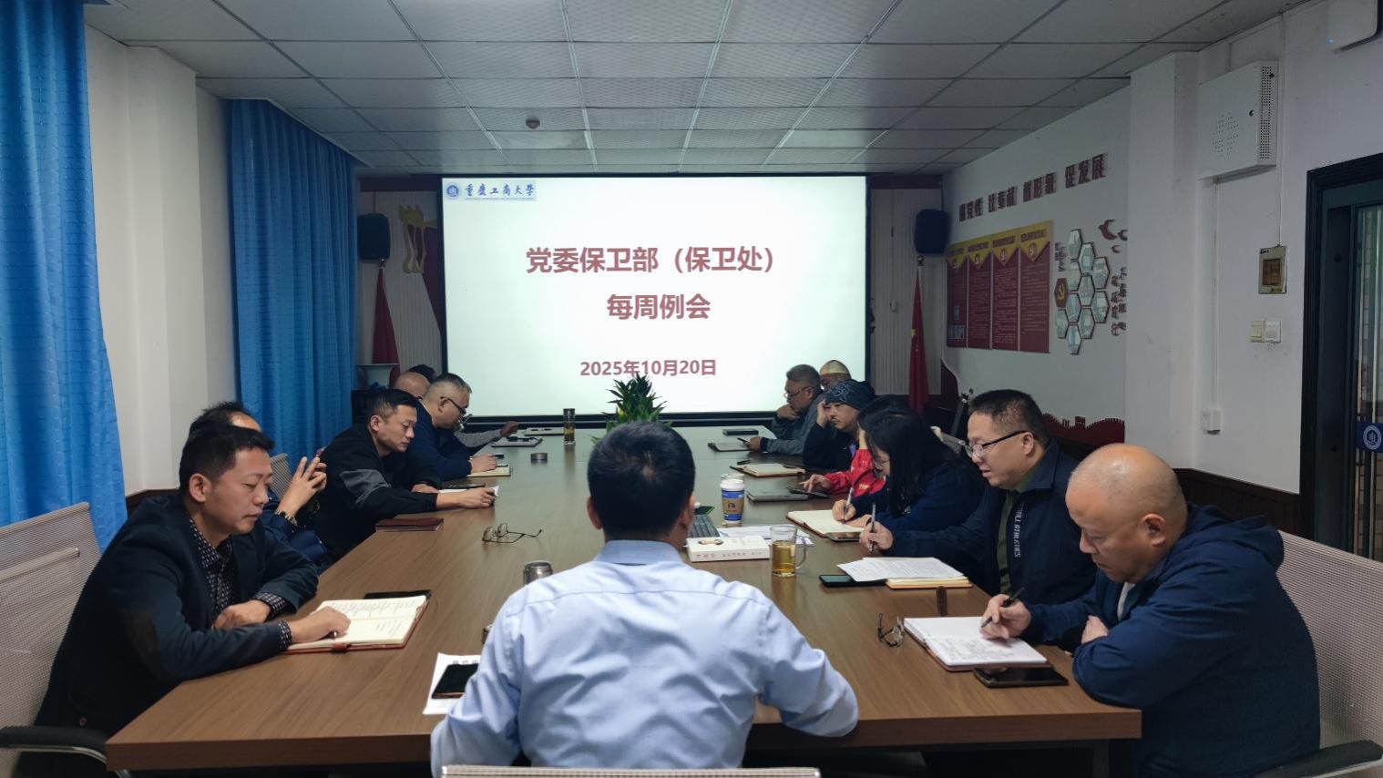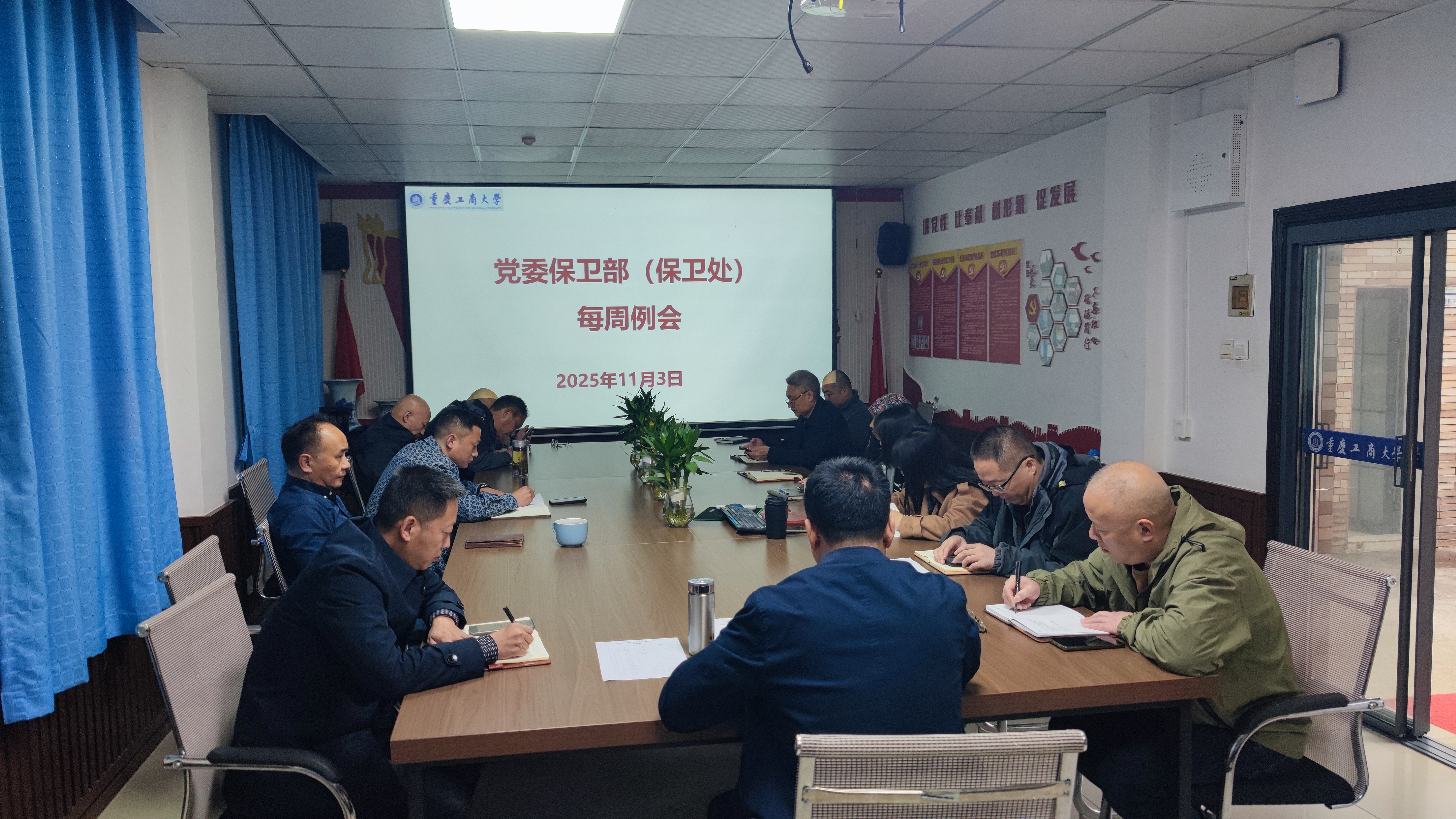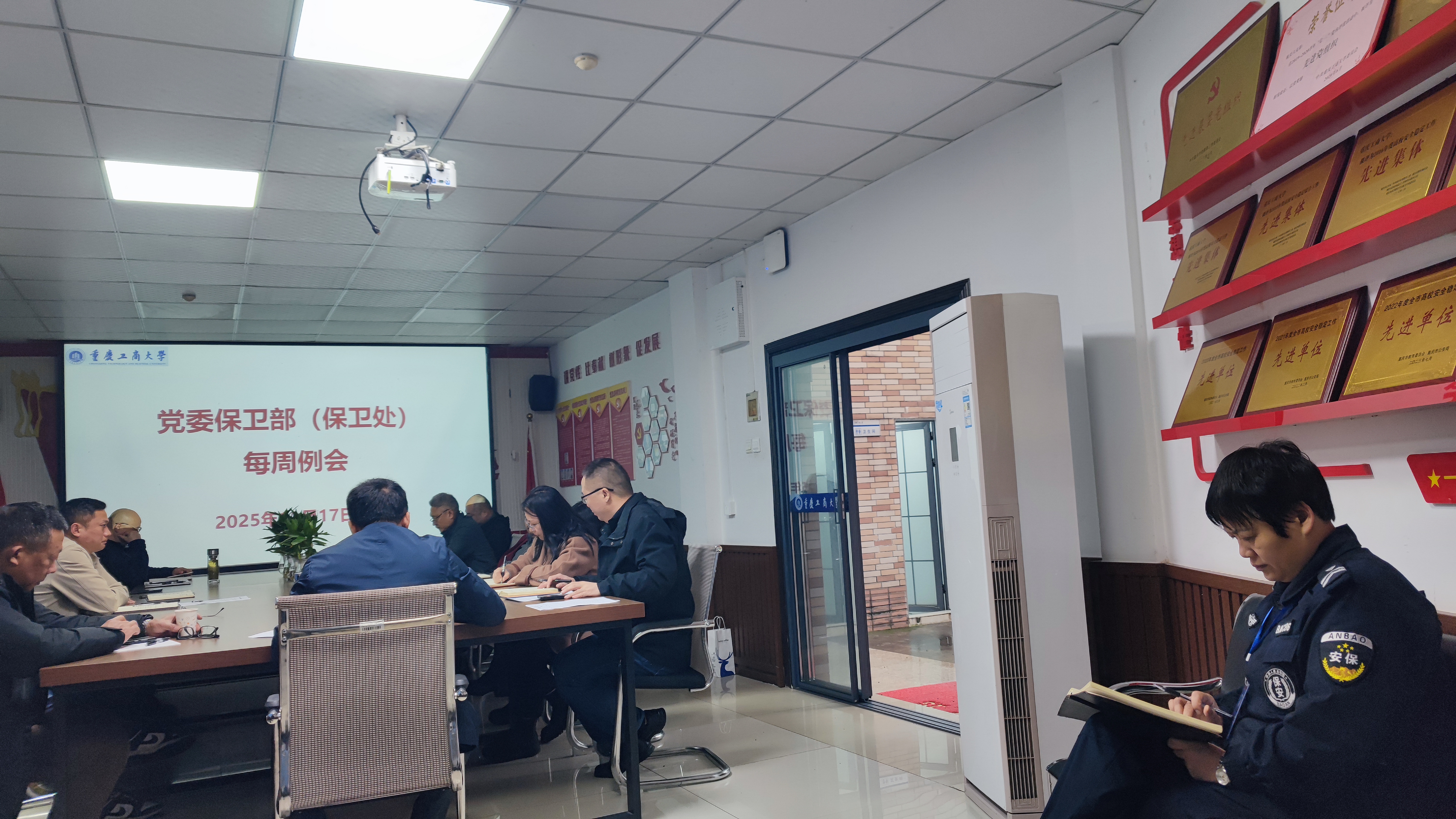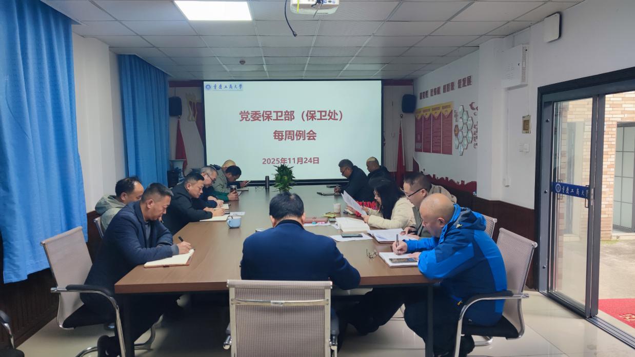 12月1日上午,2138cc太阳集团官网(保卫处)在会议室召开了每周工作例会。全体保卫干部、安保大队队长和副队长参加了会议,会议由2138cc太阳集团官网部长(保卫处处长)沙云同志主持。按照“第一议题”要求,秦爽同志领学了《中国共产党重庆市第六届委员会第八次全体会议决议》以及《习近平谈治国理政》第五卷:“八、发展新时代中国特色社会主义文化”“九、落实以人民为中心的发展思想,不断提高人民生活品质”相关内容。彭文涛同志领学了《2138CC太阳集团师德师风专题教育材料汇编(2025)》中的《教育部等六部门关于加强新时代...