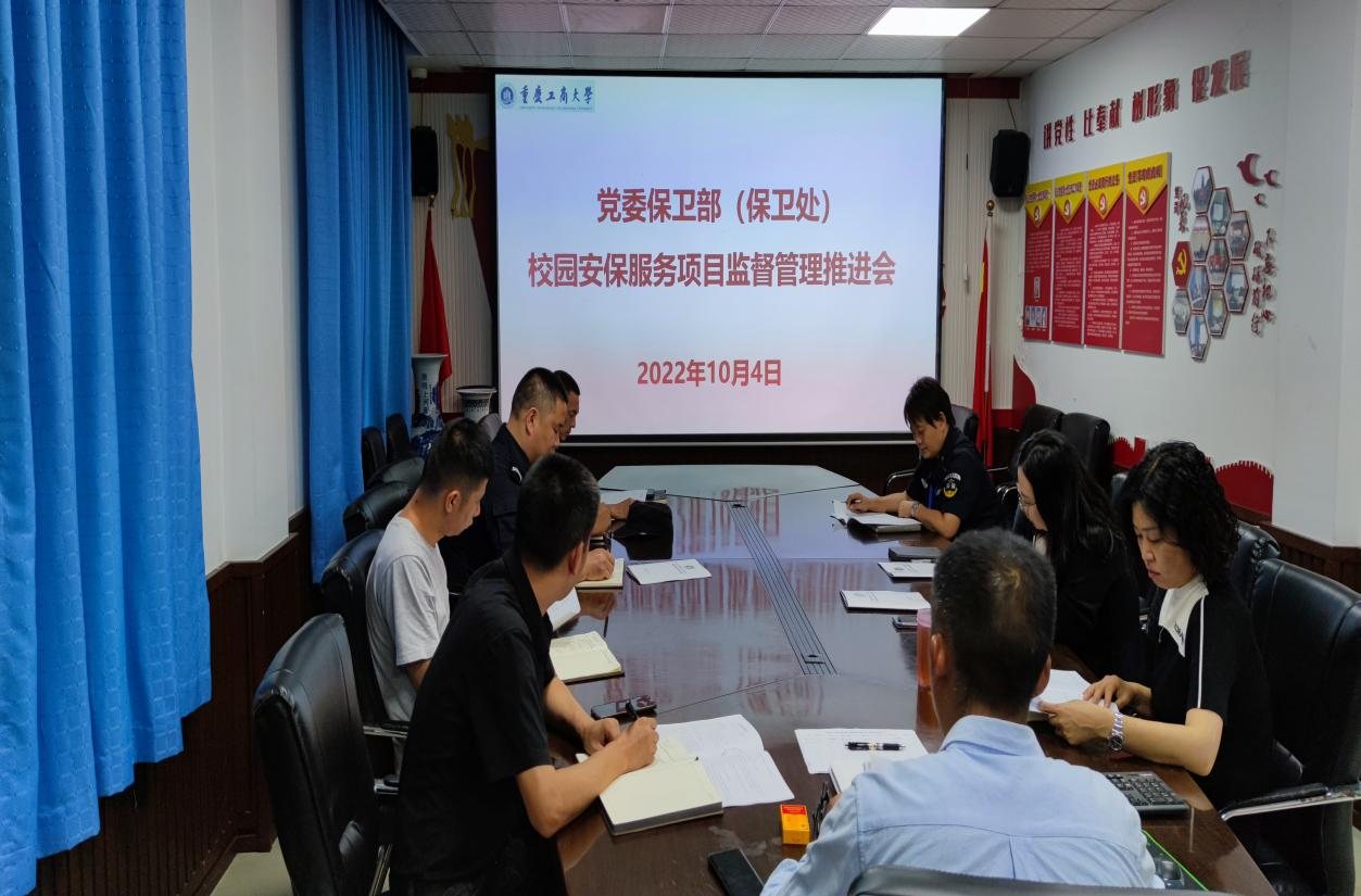 10月4日下午,2138cc太阳集团官网(保卫处)在会议室召开了校园安保服务项目监督管理推进会。会议由2138cc太阳集团官网部长(保卫处处长)钱忠坤同志主持,处务会成员和安保大队队长、副队长参加会议。按照会议议程,钱忠坤首先传达了学校纪检监察室《关于做好我校南岸校区(含兰花湖片区)新一轮物业服务、安保服务、园林绿化管理与服务项目管理工作的提醒函》(重工商大纪监函〔2022〕52号)的主要精神,然后集中学习了校园安保服务合同和考评...