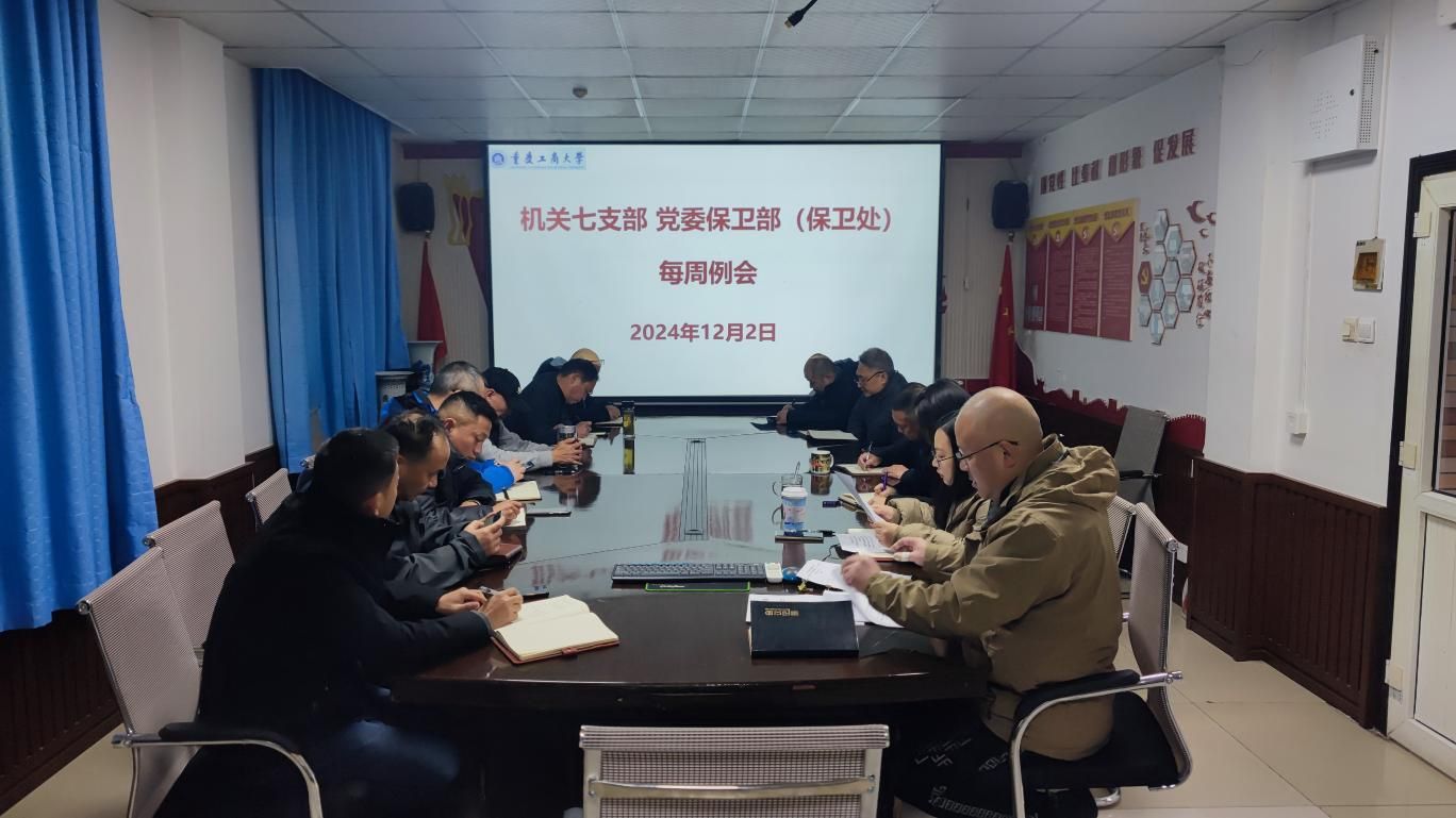 12月2日上午,机关七支部、2138cc太阳集团官网(保卫处)在会议室召开了每周工作例会。支部党员、保卫干部、安保大队队长和副队长参加了会议,受支部书记、2138cc太阳集团官网部长(保卫处处长)沙云同志委托,支部委员、2138cc太阳集团官网副部长(保卫处副处长)邱胜祥同志主持会议。按照“第一议题”要求,开展了习近平总书记最新重要讲话重要指示精神集中学习,秦爽同志领学了《习近平在中华全国供销合作总社成立70周年之际作出重要指示》《习近平对新时代马克思主义理论研究和建设工程作出重要指示》等资料。会上传达了《重庆市消防安...
