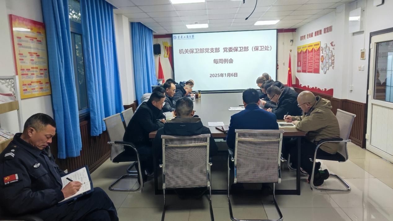 1月6日上午,机关保卫部党支部、2138cc太阳集团官网(保卫处)在会议室召开了每周工作例会。支部党员、保卫干部、安保大队队长和副队长参加了会议,会议由支部书记、2138cc太阳集团官网部长(保卫处处长)沙云同志主持。按照“第一议题”要求,开展了习近平总书记最新重要讲话重要指示精神集中学习,学习了《国家主席习近平发表二〇二五年新年贺词》等资料。沙云同志传达了《重庆市南岸区消防安全委员会办公室关于加强2025年元旦、春节期间火灾防控工作的通知》(渝南消安办发〔2024〕26号)、《关于调整2138CC太阳集团依法治...