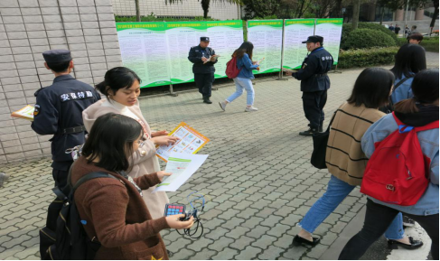 3月20日上午10时至12时,在南岸校区博智楼门前开展了集中宣传教育活动。活动期间,悬挂宣传标语7幅,张贴宣传画报500余份,展出宣传展板20块,利用平安校园信息发布平台发布安全知识3期,现场发放宣传资料6000余份,保卫干部、四公里派出所民警还为师生提供了现场咨询服务。