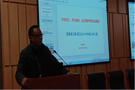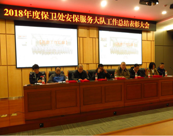 2019年1月15日下午,保卫处在图书馆第一会议室举行了校园安保服务大队2018年度工作总结表彰及寒假安稳工作动员部署大会,大会由保卫处副处长邱胜祥主持,保卫处钱忠坤处长、全体保卫干部、重庆巴南保安服务有限公司刘亚非经理、全体安保队员参加了会议。