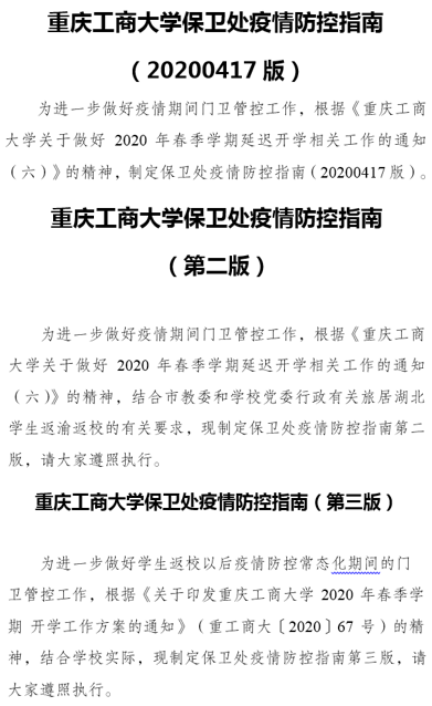 对外,保卫处配合学府路社区和四公里派出所工作人员来校开展宣传教育、居家隔离检查、体温检测等工作;配合南岸区教委核查返渝人员;向相关部门及时报送学生返校数据等。学生分批集中返校期间,门卫管控工作得到四公里派出所、五公里派出所、交巡警西区大队、街道、社区等单位的大力支持。