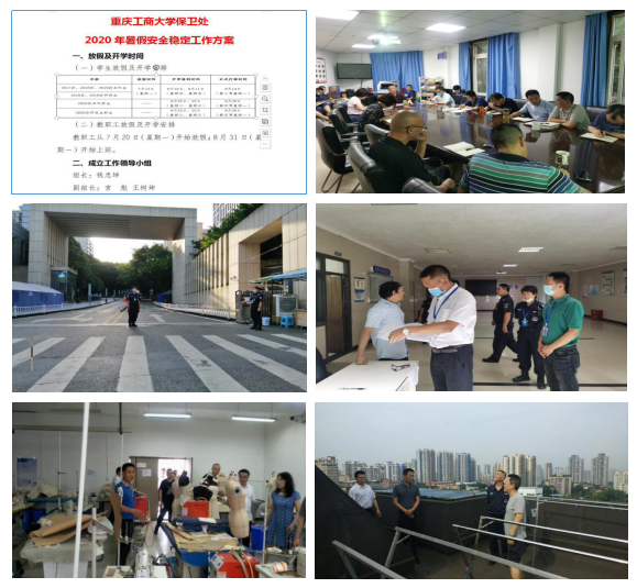 六是持续开展宣传教育活动。利用校园网和保卫处微信公众号发布了《关于加强暑期南岸校区门卫管控工作的通知
