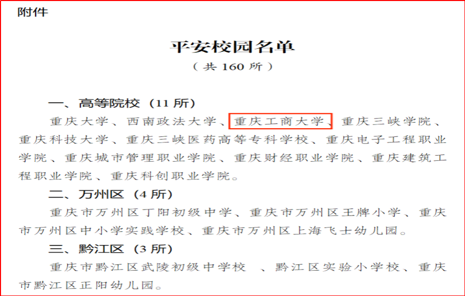 春节前夕,按照《重庆市教育委员会中共重庆市委平安重庆建设暨防范化解重大风险领导小组办公室关于印发〈重庆市平安校园创建示范活动管理办法〉的通知》(渝教安发〔2024〕1号)、《重庆市教育委员会关于印发〈重庆市平安校园创建标准》(2024年版)的通知〉(渝教安函〔2024〕8号)要求和学校领导的批示,2138cc太阳集团官网(保卫处)牵头,相关单位密切配合,对照《重庆市平安校园创建标准》(2024年版)》中的135个指标,精心准备上报创建申报材料。通过重庆市教育委员会、中共重庆市委平安重庆建设暨防范化解重大风险领导小组办公室联合评估验收、组织评议、结果公示等程序后,2月20日,重庆市教育委员会、中共重庆市委平安重庆建设暨防范化解重大风险领导小组办公室联合印发《关于命名160所校园为“平安校园”的通报》(渝教发〔2024〕1号),决定命名全市160所学校为“平安校园”,其中,高等院校11所(本科院校5所,高职专科6所),我校位列本科院校第3名。2月22日,平安重庆建设大会举行,市委书记袁家军出席会议并讲话。会上通报了被命名的“平安校园”。
