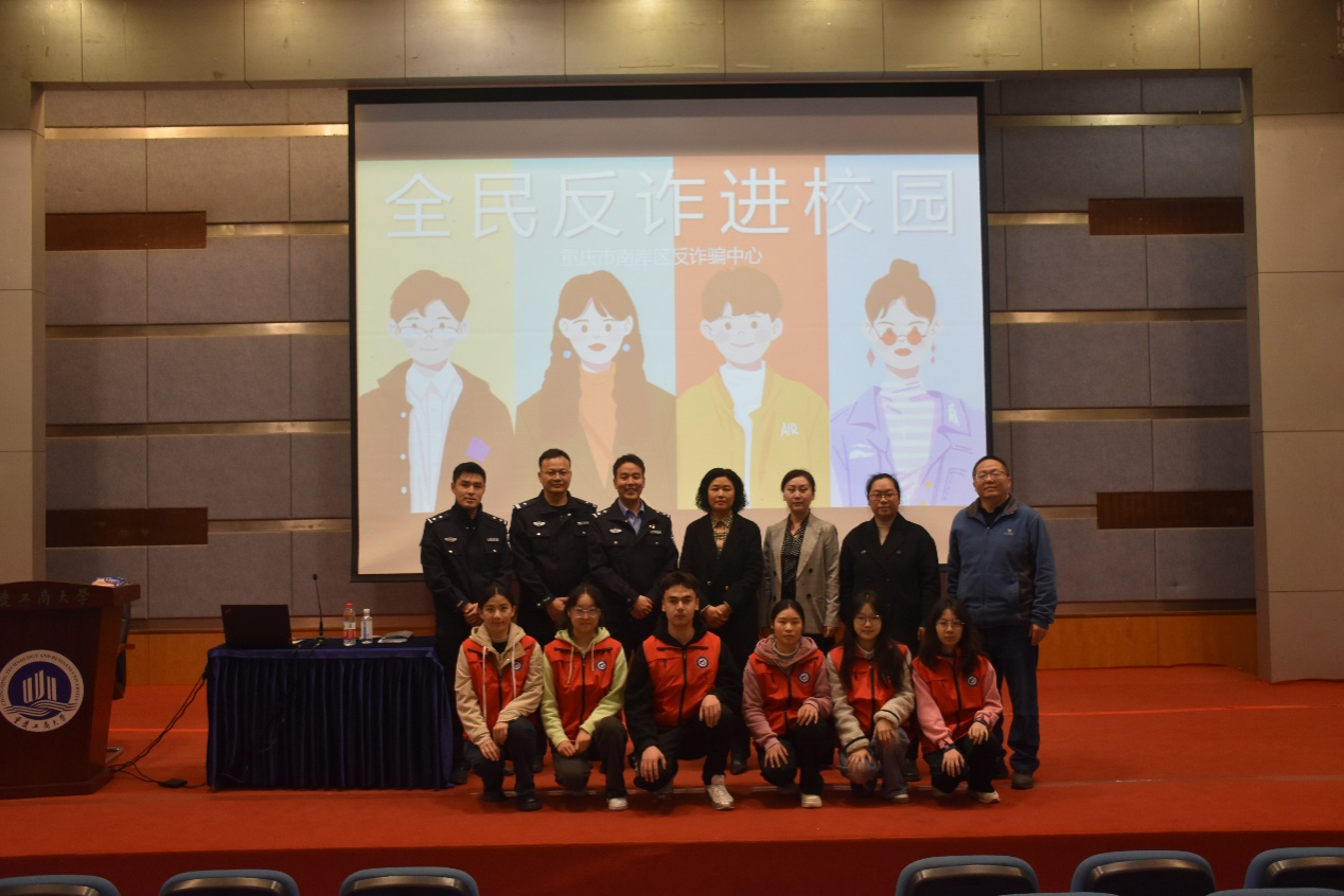 保卫处曹晓丽副处长、学生处林璐副处长、会计学院郝颖副书记、南岸区反诈中心幸永祥警官、四公里派出所刘国魁警官一同参加了宣讲活动。