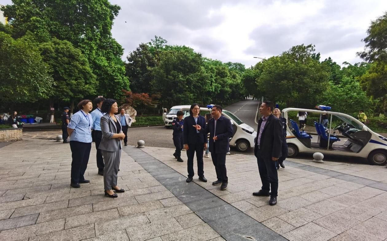 沙云处长一行分别走访检查了南岸校区翠湖水域、后山森林防火责任区域、新北高层公寓学生宿舍、南岸校区一号门以及兰花湖片区等重点场所。通过实地检查、与各岗位值班人员交流询问,详细了解了溺水事故预防、火灾防范、隐患排查、交通管理、门卫管控、应急值守等方面的安全工作情况,提出了五一小长假期间的工作要求。