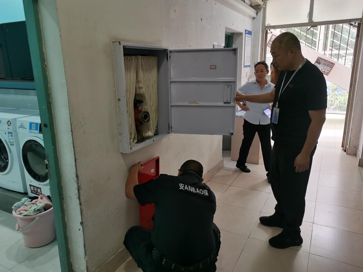 8月24日以来,处领导带队到后山森林、学生公寓、教学楼、食堂、图书馆、翠湖、校门、家属区等人员密集场所和校内电动汽车充电桩、电动自行车充电场所等重点部位的消防安全检查,慰问一线在岗队员,要求加强电气设备消防安全巡查检查、消防通道巡查检查、严格用火用电用气安全管理,加强高温期间值班值守,紧盯持续晴热高温天气各类风险隐患, 扎实推进高温天气安全防范和维护校园安全稳定工作,确保暑期校园平安。