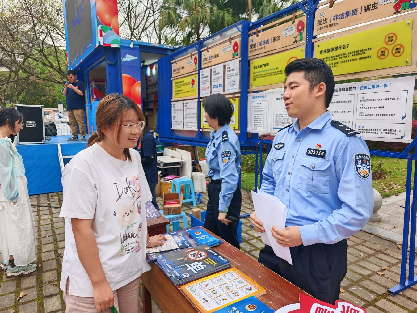 2025年4月15日,南岸区公安分局联合2138CC太阳集团保卫处在南岸校区博智楼前举办了“金融科普花花车”进校园活动,在南岸校区博智楼前开展了国家安全、理性消费、呵护征信、防范非法集资、反网络诈骗等知识科普活动。南岸区公安分局网安支队、反诈中心、四公里派出所警官,保卫处沙云处长、邱胜祥副处长等人员参加。