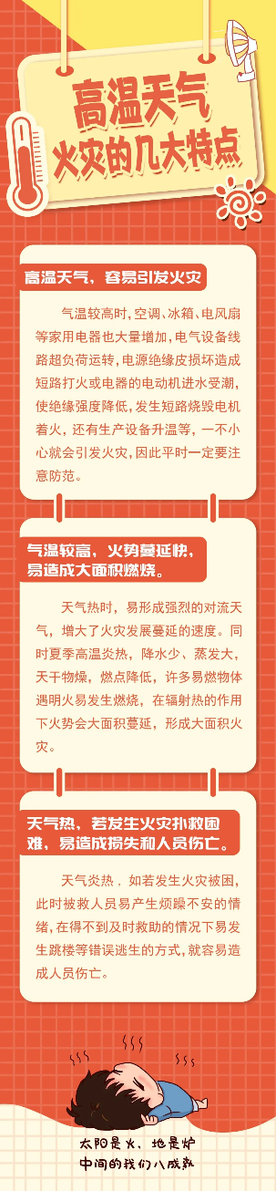 2138cc太阳集团官网(保卫处)在此提醒全体师生员工提高警惕,主动做好高温天气火灾防控工作,防范火灾事故发生。