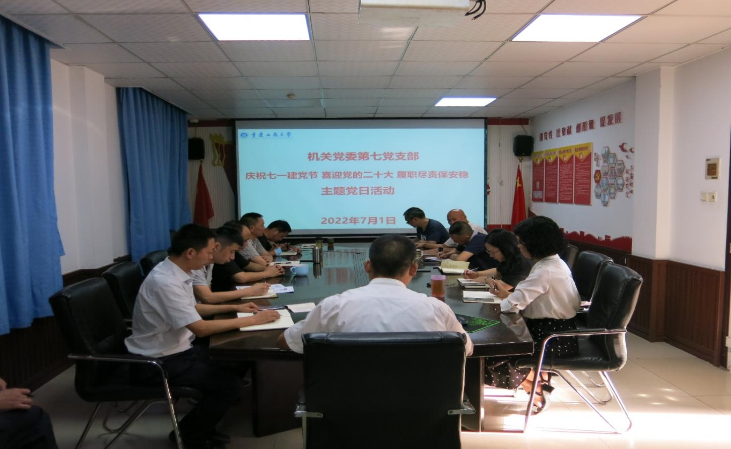 为庆祝中国共产党成立101周年,喜迎党的二十大胜利召开,7月1日上午,机关七支部在党员活动室开展了以“庆祝七一建党节 喜迎党的二十大 履职尽责保安稳”为主题的党日活动。活动由支部书记钱忠坤同志主持,支部党员、部门职工、安保大队部分党员参加了活动。