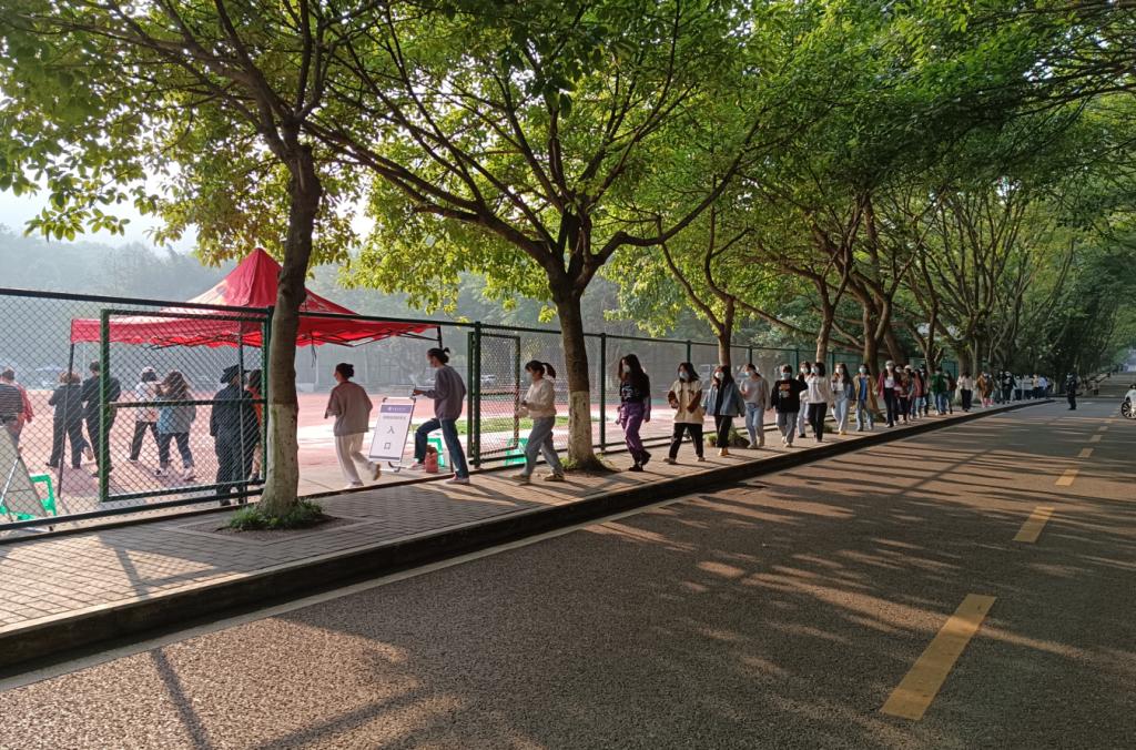 活动第二阶段,全体同志深入一线开展工作。中午12:30,在钱忠坤同志的统一指挥调度下,全体同志以饱满的精神状态奔赴各自岗位开展工作。王树坤同志带队负责一二号门管控;刘照禄、何立军同志负责家属区管控;曹晓丽、胡慎奎、吴佳、杨岚钦同志负责南区运动场核酸检测现场秩序维护;何炫梁、刘兵、吴波同志负责北区运动场核酸检测现场秩序维护;张毅、吴春雪同志负责新北区高层公寓管控;田正宏、黄岗同志继续开展流调工作;王鹤立同志负责后勤保障工作;秦爽同志在家负责防疫数据的统计上报工作。