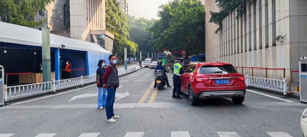 6:30,校园安保大队按照要求完成新北区封控区域的警戒线设置,并安排人员值守。