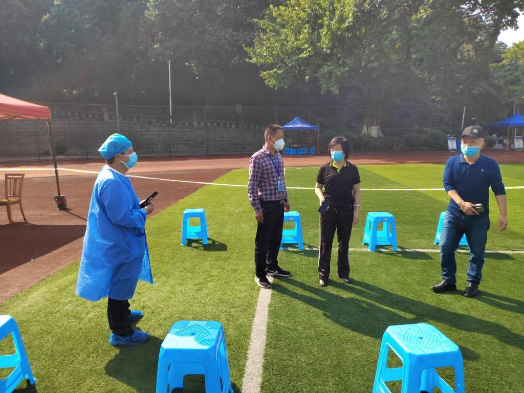 13:40,李国军副校长到北操核酸检测现场检查指导工作。