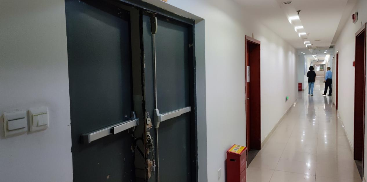 10:53,曹晓丽带队去学豪酒店四楼查看楼层封闭情况。