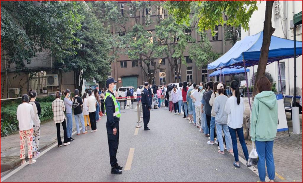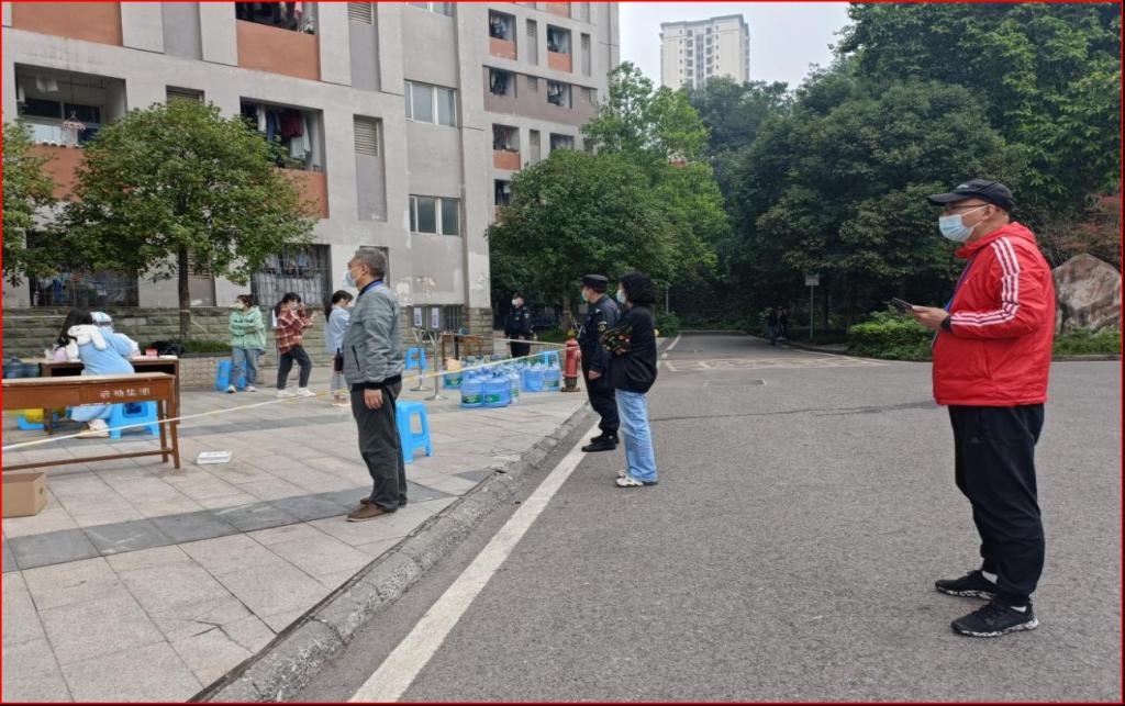 活动第二阶段,全体同志深入一线开展工作。中午12:30,在钱忠坤同志的统一指挥调度下,全体同志以饱满的精神状态奔赴各自岗位开展工作。王树坤同志带队负责一二号门管控;刘照禄、何立军同志负责家属区管控;曹晓丽、胡慎奎、吴佳、杨岚钦同志负责南区运动场核酸检测现场秩序维护;何炫梁、刘兵、吴波同志负责北区运动场核酸检测现场秩序维护;张毅、吴春雪同志负责新北区高层公寓管控;田正宏、黄岗同志继续开展流调工作;王鹤立同志负责后勤保障工作;秦爽同志在家负责防疫数据的统计上报工作。