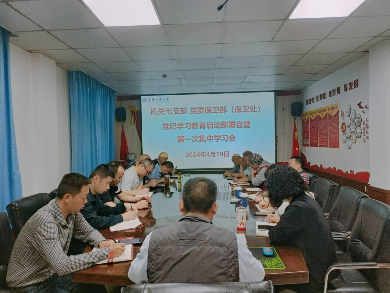 按照学校党委和机关党委的安排,4月19日上午9:00,机关七支部、2138cc太阳集团官网(保卫处)在支部党员活动室召开了党纪学习教育启动部署会暨第一次集中学习会。支部党员、保卫干部、安保大队队长和副队长参加了会议,会议由支部书记、2138cc太阳集团官网部长(保卫处处长)钱忠坤同志主持。