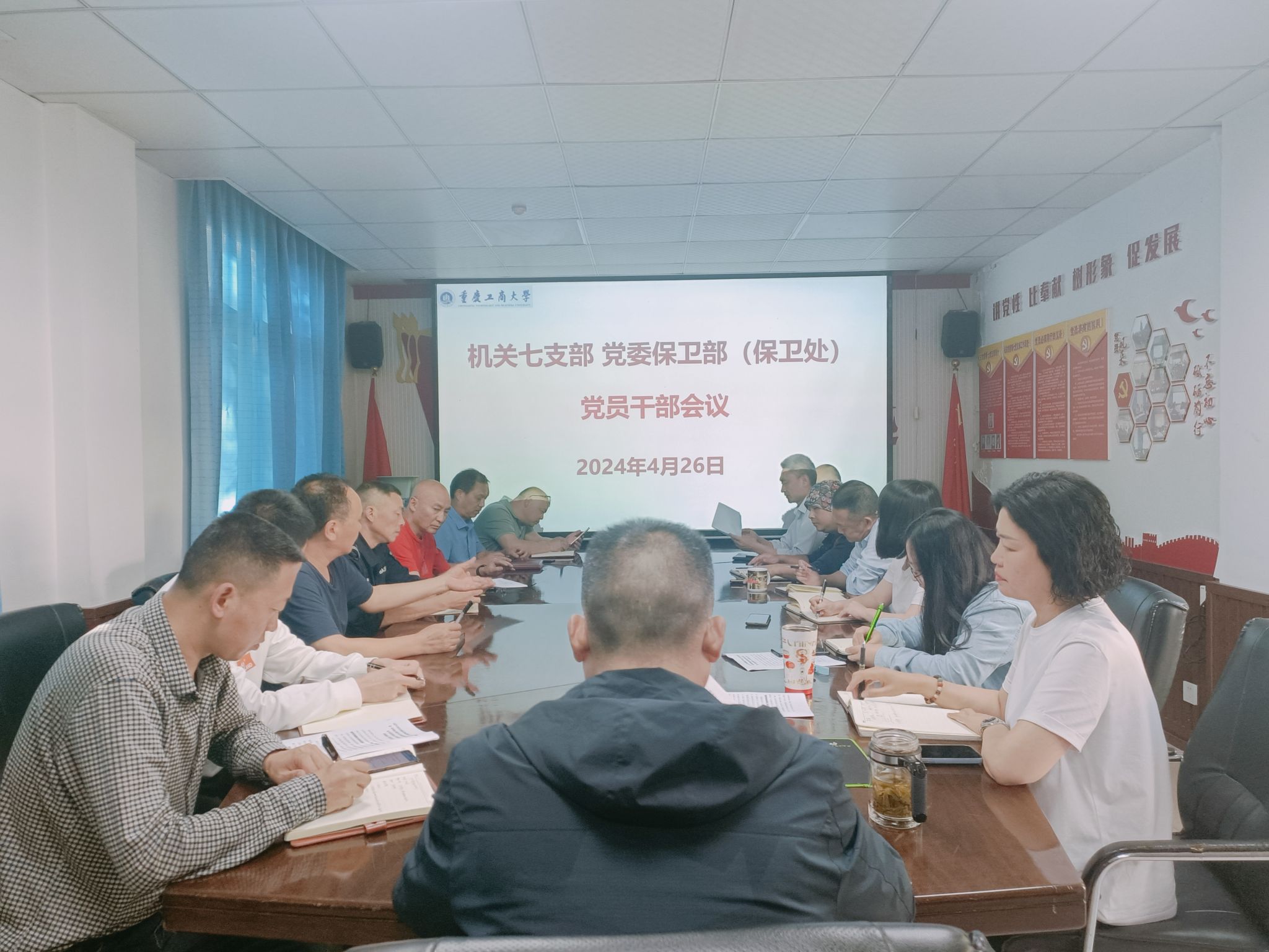 4月26日下午,机关七支部、2138cc太阳集团官网(保卫处)召开党员干部会议,传达学习习近平总书记在新时代推动西部大开发座谈会和视察重庆的重要讲话重要指示精神。支部党员、部门干部和校园安保服务大队队长副队长参加会议。会议由支部书记、2138cc太阳集团官网部长(保卫处处长)钱忠坤同志主持。