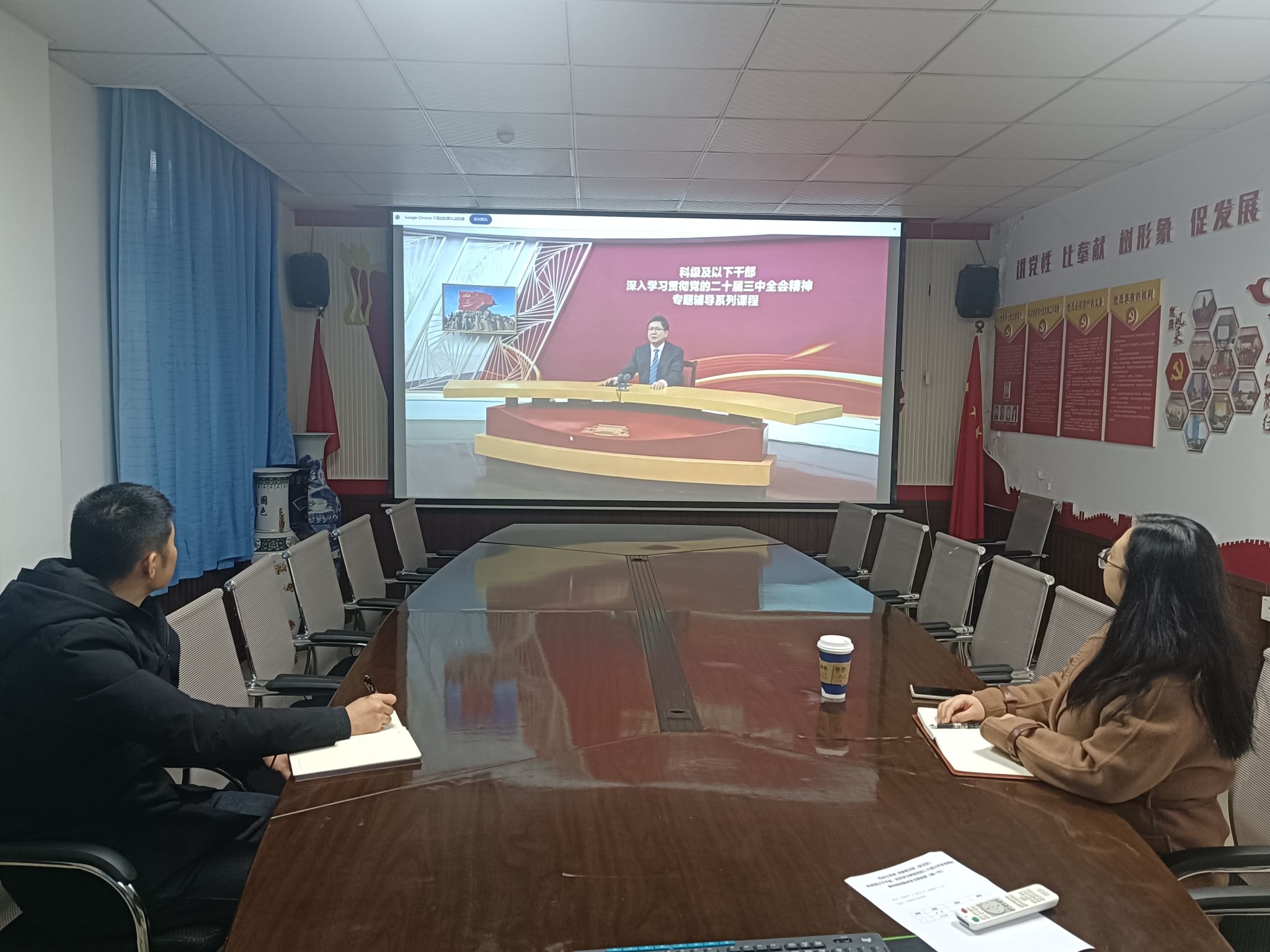 第二阶段,科级干部秦爽、何炫梁通过观看视频集中学习了“发挥经济体制改革牵引作用,全面推进各领域改革”1门课程,完成了第一次集中学习。