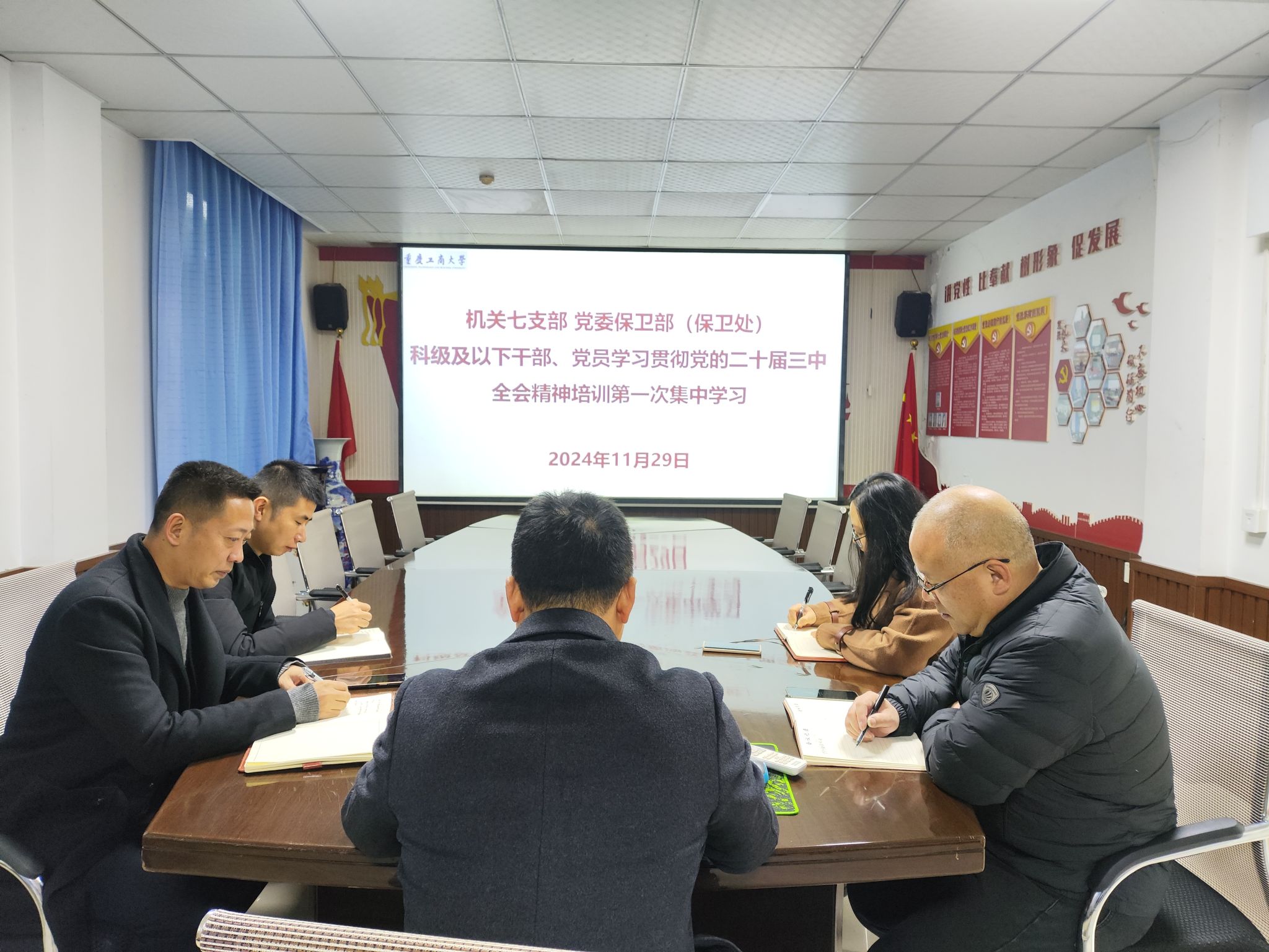11月29日上午,机关七支部、2138cc太阳集团官网(保卫处)在支部党员活动室开展了科级及以下干部、党员学习贯彻党的二十届三中全会精神培训第一次集中学习会。机关七支部全体支委成员参加,活动由支部书记、2138cc太阳集团官网部长(保卫处处长)沙云同志主持。