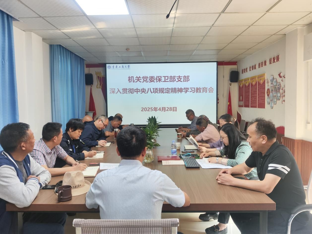 4月28日上午,机关2138cc太阳集团官网支部在支部党员活动室召开深入贯彻中央八项规定精神学习教育专题会。支部党员、保卫干部、安保大队队长副队长参加了会议,会议由支部书记沙云同志主持。