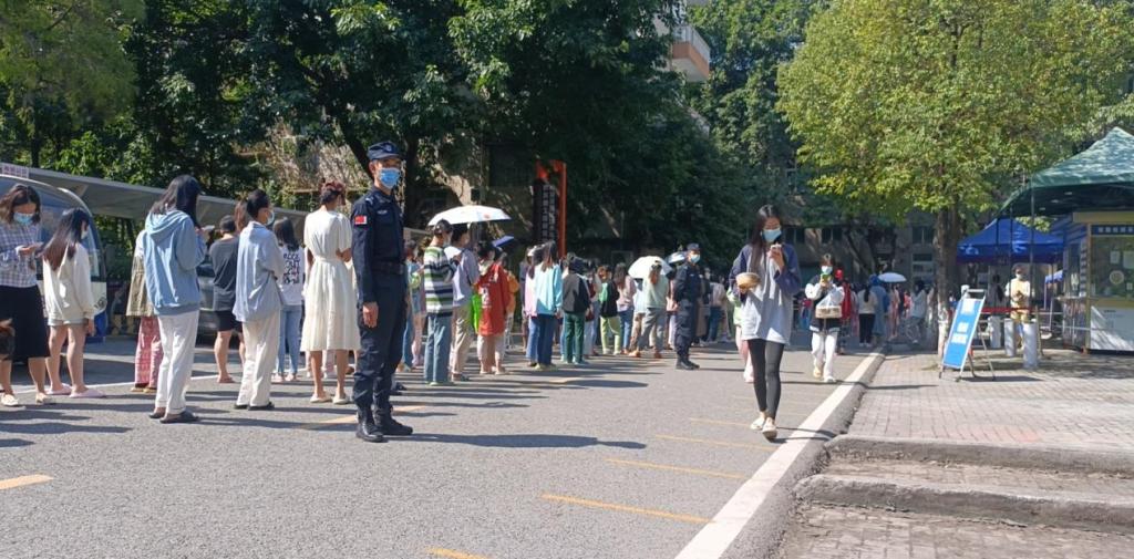12:30,王树坤带领消防科同志到北区操场核酸检测现场及周边开展秩序维护工作。